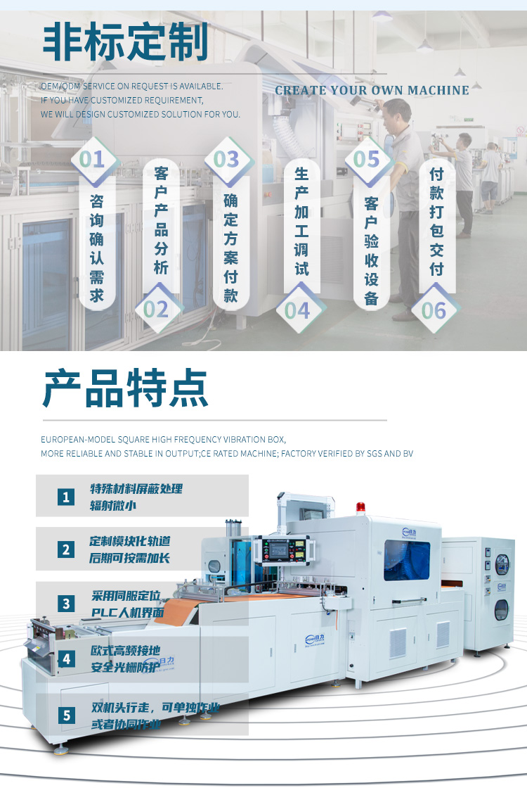 單頭推盤式高周波熔接機(jī)和單頭轉(zhuǎn)盤式高周波熔接機(jī)有手動和自動兩種可供選擇,自動推盤式或自動轉(zhuǎn)盤式的高周波機(jī)效率高,