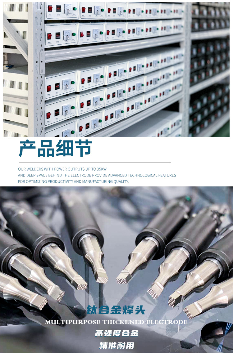 機(jī)器特點(diǎn): | 專用超聲波系統(tǒng) 15K 2600W1. 氣動(dòng)元件: 亞德客(氣缸,電磁閥,調(diào)壓閥)2. 數(shù)字線路: 采用美國進(jìn)口高性能抗干擾處理器,數(shù)字智能芯片控制,德國IGRT功率模塊,移相全橋拓?fù)?出力更強(qiáng)勁,輸出更穩(wěn)定,不燒機(jī)3. 上模焊頭:加硬熱處理鋼模 5. 超聲波發(fā)生器電箱: 最先進(jìn)美式數(shù)字線路,微電腦屏幕,人性化操作,簡單易懂易調(diào),精確的時(shí)… |