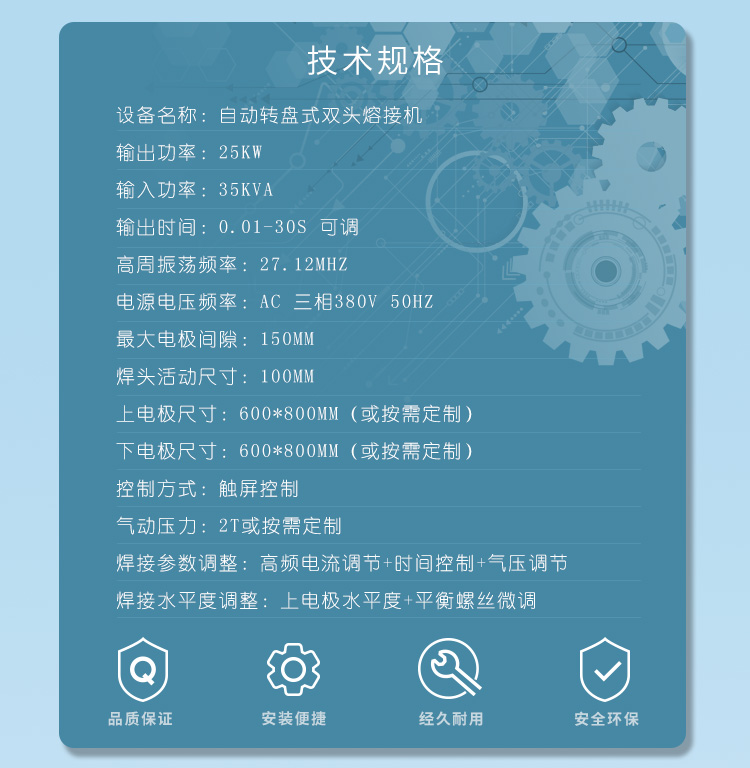 三,轉(zhuǎn)盤(pán)式高周波尿袋成型機(jī)設(shè)備規(guī)格 :