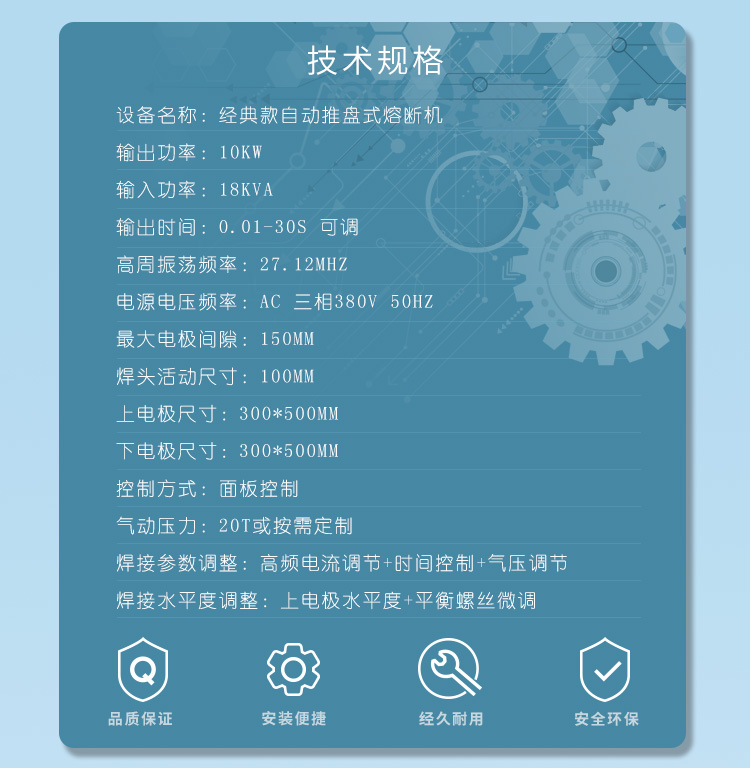 三,自動滑臺式高周波同步熔斷機(jī)的技術(shù)規(guī)格: