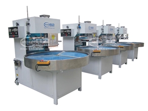機器特點: | 自動轉盤式高周波熔斷機采用精密分割器裝置,采用臺灣馬達驅動。三工位輪流作業(yè),工位定位精準??蛇x用機械手自動取料節(jié)約人工 |
