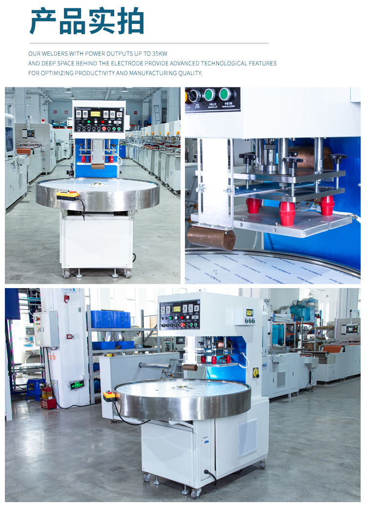 ★高周波熔接機,通常也稱為高周波吸塑包裝機、高周波塑料熔接機、高頻熱合機、高頻封口機、吸塑包裝機、高周波封口包裝機、熱合封口包裝、泡殼包裝機、高頻熱合包裝機、吸塑包裝機、高周波封口機、高頻包裝機、高周波包裝機、包裝機械等等。單頭轉盤式高周波熔接機有手動和自動兩種可供選擇,自動轉盤式高周波熔接機采用精密分割器裝置,采用臺灣馬達驅動。工位輪流作業(yè),定位準,可選配機械手自動取料。 ★用于吸塑包裝封口的高周波機器,使用時可根據吸塑包裝的產品尺寸大小,來決定一次同時包裝一個或多個產品。工作臺自動旋轉,3-6工位可選擇,工作效率更高。更多詳細情況歡迎致電日力公司。