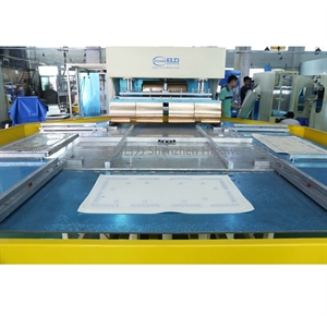 轉(zhuǎn)盤式高周波PVC沼氣池熔接機(jī) 一,用途 轉(zhuǎn)盤式高周波PVC沼氣池熔接機(jī)/PVC沼氣袋焊接機(jī)通過高周波的原理,用來做高周波PVC沼氣池熔接、PVC蓄水池熔接、PVC兒童游泳池熔接,也可以用來做高周波汽車篷布帆布接駁、高周波帳篷布熔接、高周波電影幕布熔接、高周波膜結(jié)構(gòu)拼接、戶外膜結(jié)構(gòu)焊接、膜結(jié)構(gòu)熔接、高頻戶外遮陽布熔接、高頻廣告噴繪布焊接、高頻PVC布熔接或含有PVC成分的任何材質(zhì)的軟性塑膠塑料的高周波熔接或拼接。通過高周波的作用后,被高頻熔接的材料,表面光滑平整且美觀牢固。 二,自動(dòng)轉(zhuǎn)盤式防滑墊高周波熔接機(jī) 特點(diǎn): ★高周波同步熔斷, 效率高,產(chǎn)品質(zhì)量高 ★自動(dòng)取成品功能 ,節(jié)省人工 ★自動(dòng)轉(zhuǎn)盤式,轉(zhuǎn)盤上可設(shè)模位:3工位,4工位,5工位,6工位等 ★本機(jī)圓盤定位用采用精密間歇分割器,能夠保證圓盤定位準(zhǔn)確性。 ★上模加熱功能,輔助高周波焊接;溫控系統(tǒng) TC----200℃可調(diào)節(jié); ★不同厚度PVC,PET-G及印刷彩卡即可上機(jī) ★ 5557高靈敏火花防護(hù)系統(tǒng),防止燒模,保護(hù)高周波系統(tǒng) ★ 轉(zhuǎn)盤材料:采用優(yōu)質(zhì)鋁材,整張板材結(jié)構(gòu); ★高頻采用歐式方形同軸共振回路,輸出大小隨產(chǎn)品大小效果調(diào)整,不會(huì)在超負(fù)何運(yùn)行。 ★設(shè)備上的元器件符合國標(biāo)計(jì)量標(biāo)準(zhǔn)及相關(guān)安全規(guī)范