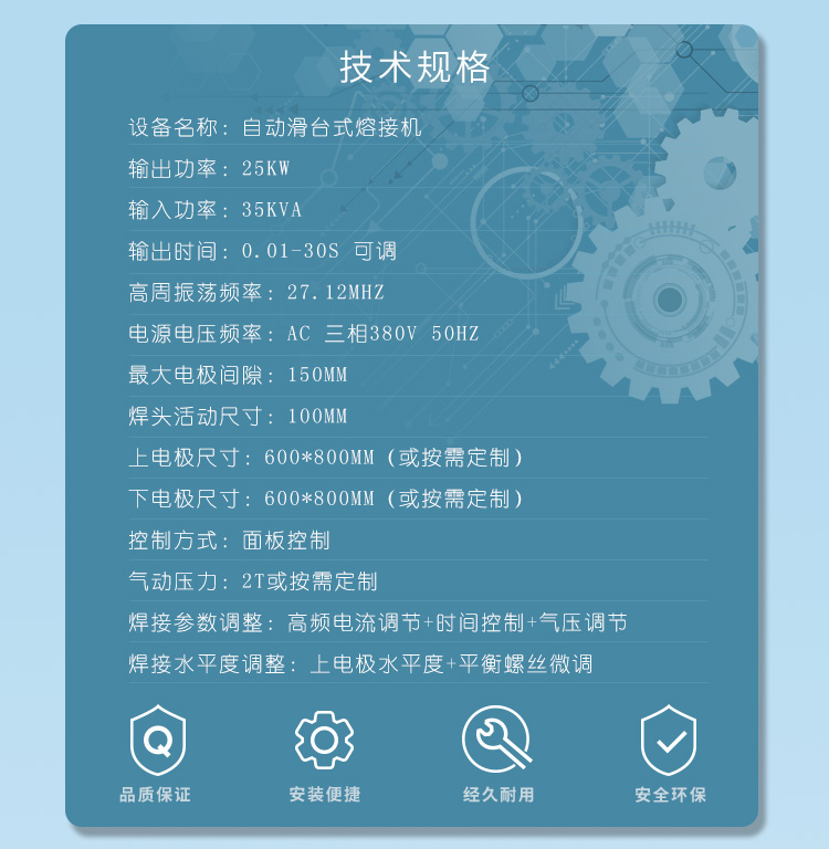 自動滑臺式高周波熔接機的適用行業(yè): 無紡布,過濾棉焊接,也可用于PVC柔軟線膠盒成型,塑料熔接、PVC加工等用途。