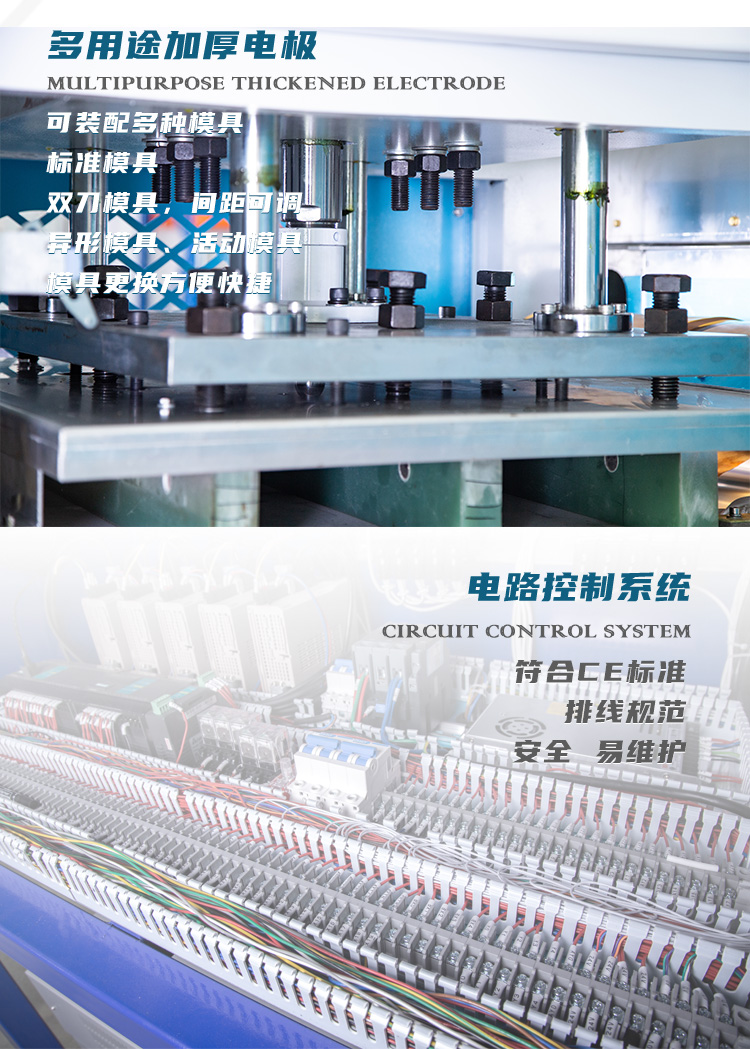 ★高周波熔接機,通常也稱為高周波吸塑包裝機、高周波塑料熔接機、高頻熱合機、高頻封口機、吸塑包裝機、高周波封口包裝機、熱合封口包裝、泡殼包裝機、高頻熱合包裝機、吸塑包裝機、高周波封口機、高頻包裝機、高周波包裝機、包裝機械等等。單頭推盤式高周波熔接機和單頭轉(zhuǎn)盤式高周波熔接機有手動和自動兩種可供選擇,自動推盤式或自動轉(zhuǎn)盤式的高周波機效率更高,產(chǎn)量更好。自動滑臺式高周波熔接機為雙向自動滑臺,往返式連續(xù)送料熔接,定位準。也適用用大面積產(chǎn)品的加工,熔接,如PVC水床,漂流筏,兒童泳池等。
