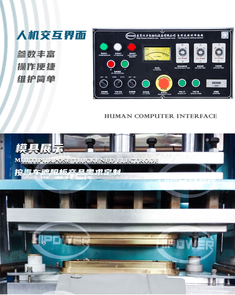 搞清了高頻機(jī)的特性,摸索出防止和減輕高頻機(jī)干擾辦法。高周波遮陽板熔接機(jī)操作方便:操作非常簡便、快捷易