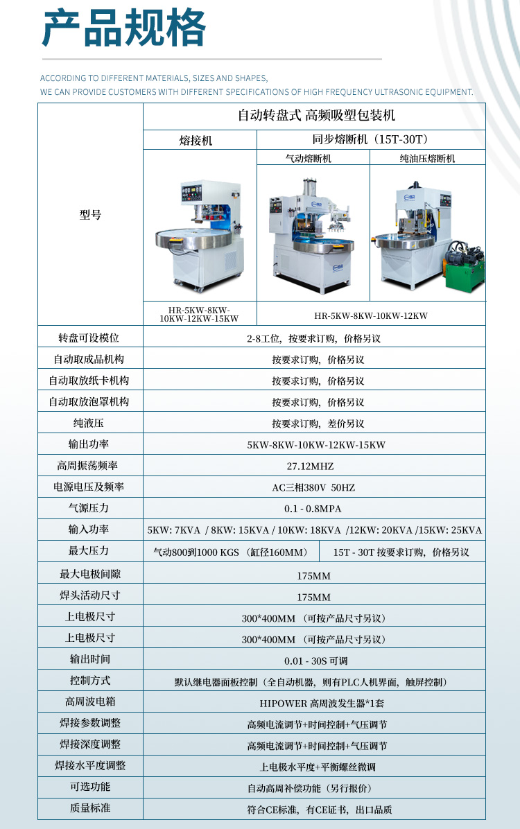 適用范圍: | 主要適用于APET、PETG、GAG環(huán)保材質的雙面吸塑泡殼的封口包裝、吸塑紙卡包裝、牙刷封口包裝,以EVA布類皮革、真皮、OPP、PU材質的熔接及熔斷。 |