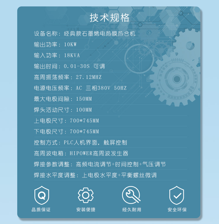 適用范圍: | 自動電熱膜高周波焊接機可焊接石墨烯電熱膜,電熱膜,電采暖地熱膜,電熱地膜,寵物加熱墊,育種加熱墊。。。 |