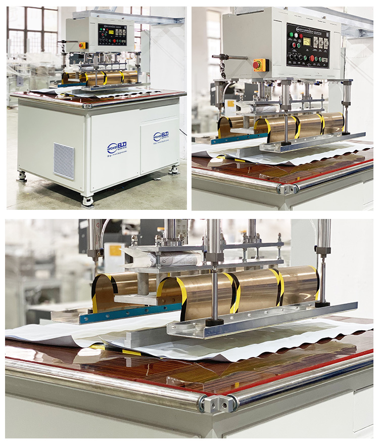 機(jī)器特點(diǎn): | 機(jī)器配十字線激光器定位燈,方便對位拼接;工作臺上下加裝滾輪,避免材料送料定位時(shí)刮傷;NL-5557防火花電子管保護(hù)裝置,使模具及產(chǎn)品的損害降到最低程度;機(jī)器模頭可懸掛在屋頂?shù)膽伊荷希瑹o限寬度放料方便大面積產(chǎn)品連續(xù)拼接; |
