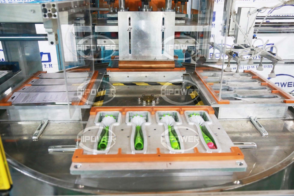 自動轉(zhuǎn)盤式高周波可塑紙卡熱壓機,配自動打印日期碼功能: