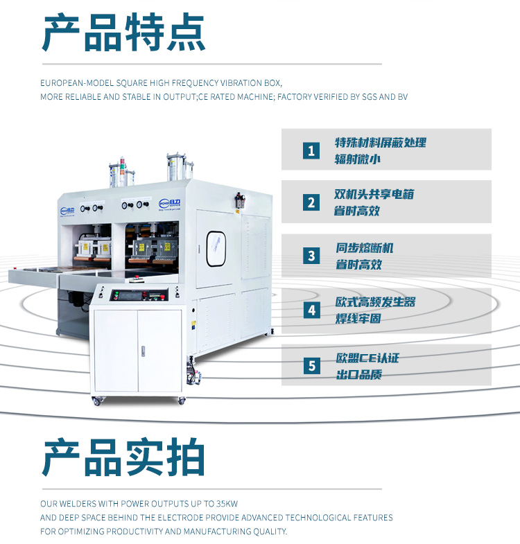 ★本高周波熔接機采用低損耗的歐洲制式同軸高頻諧振器,高周波輸出電力強大,能迅速時間使制品熔接,大大提高了生產(chǎn)產(chǎn)量。機器設(shè)有高周波頻率穩(wěn)定器,以及高周波屏蔽裝置。將高頻干擾降低,避免電波干擾。同時可以避免由不當(dāng)操作所引起的頻率漂移,使電極和物料損壞減低同時警告燈亦發(fā)亮示警。