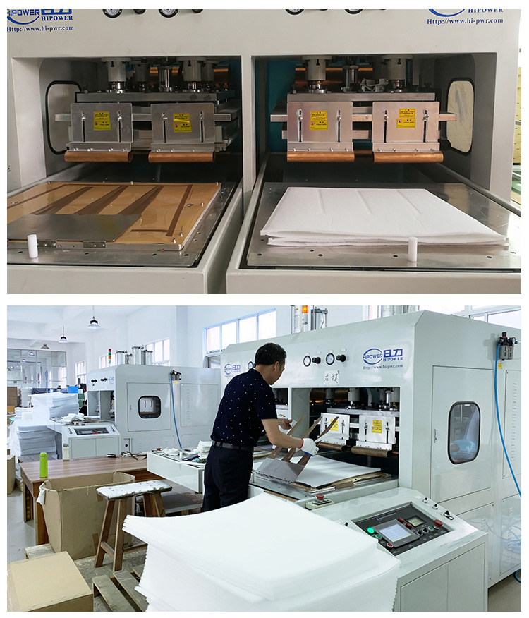 ★利用高頻熱合的原理,通過高周波模具加熱,使空氣過濾棉與無紡布在高周波的作用下熔為一體。
